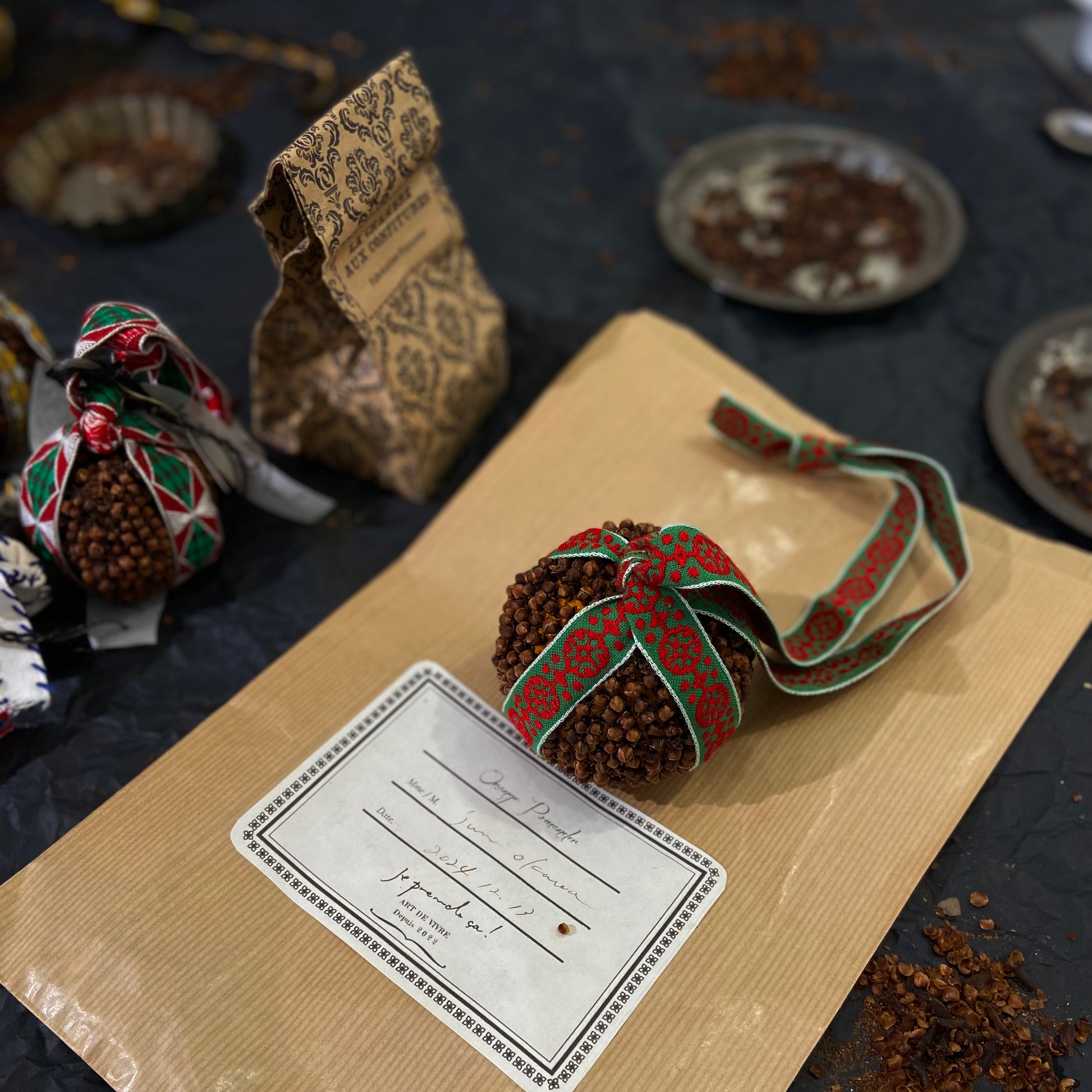 オレンジの表面にクローブを刺し、香料の粉をまぶして乾かしたものをポマンダーと言います。